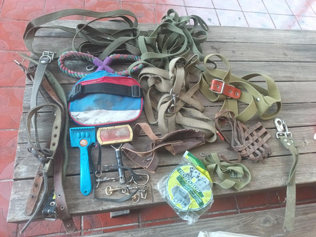 Комплектом для собаки - чесалки, поводки, ошейники, намордники, сумка для дрессировки