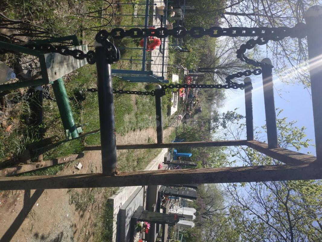 Продам в связи с благоустройством ограду на могилку, цепи, шары и столбики,нужно покрасить и все.