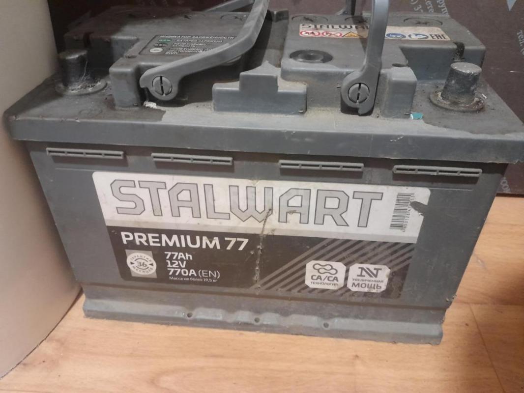 Продам аккумулятор stalwart 77а 770 пусковой ток, полярность прямая(слева + справа -) 6500руб.
