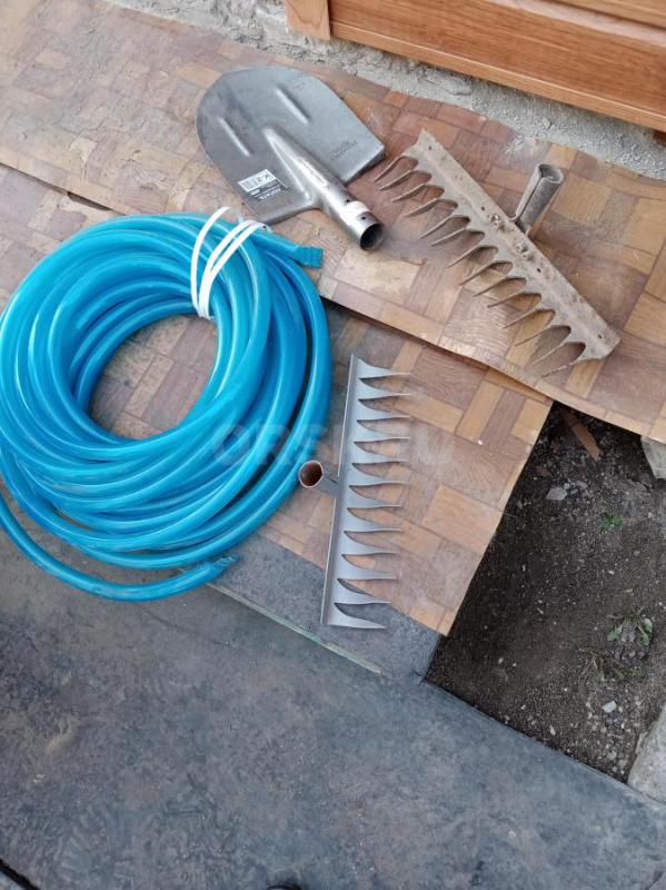 Тачка садовая, шланг поливочный 30м,новый, укрывной материал новый в упаковке, грабли, лопата, нов