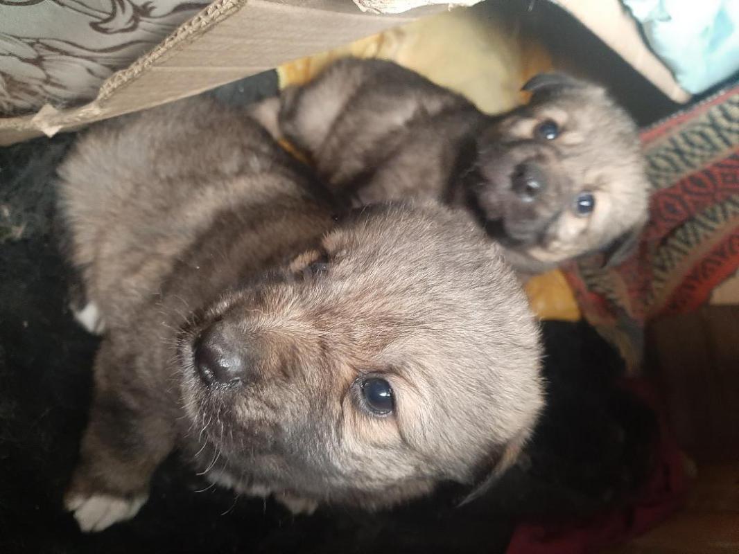 Два щенка 8 месяцев , кобелек и стерилизованная девочка, охранники, живут в будке, едят все нату
