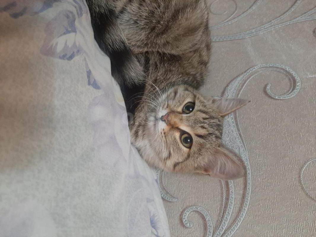 Отдам котенка девочка ,возраст 5 мес,кушает все ,лоток знает ,активная ,стерилизованная ,район аванг