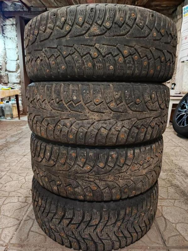 Продам б/у комплект зимних шипованных шин 205/55/r16: три баллона Нокиан Хакка 5, один Сайлун Айс Бл