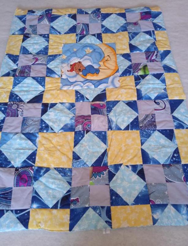 Стёганое лоскутное одеяло/покрывало для детей младшего возраста Мишка на Луне.