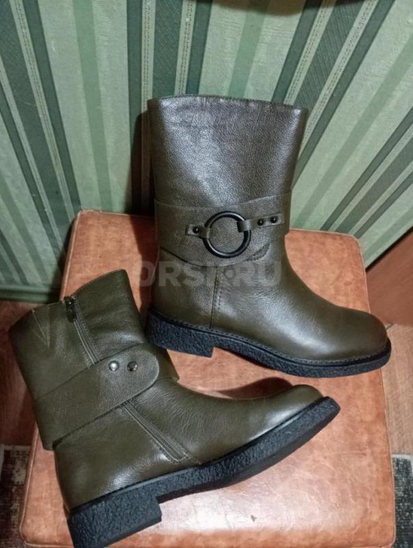 Продам новые полусапожки, 39 размер, цвет хаки, искусственная кожа.