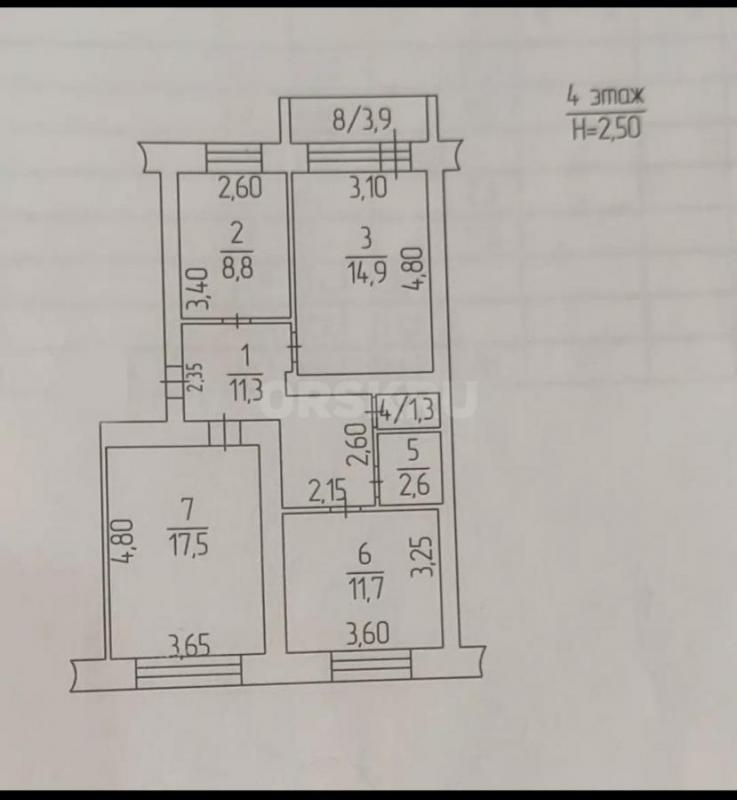 72 м2, 3-комн. квартира, 4 этаж из 5