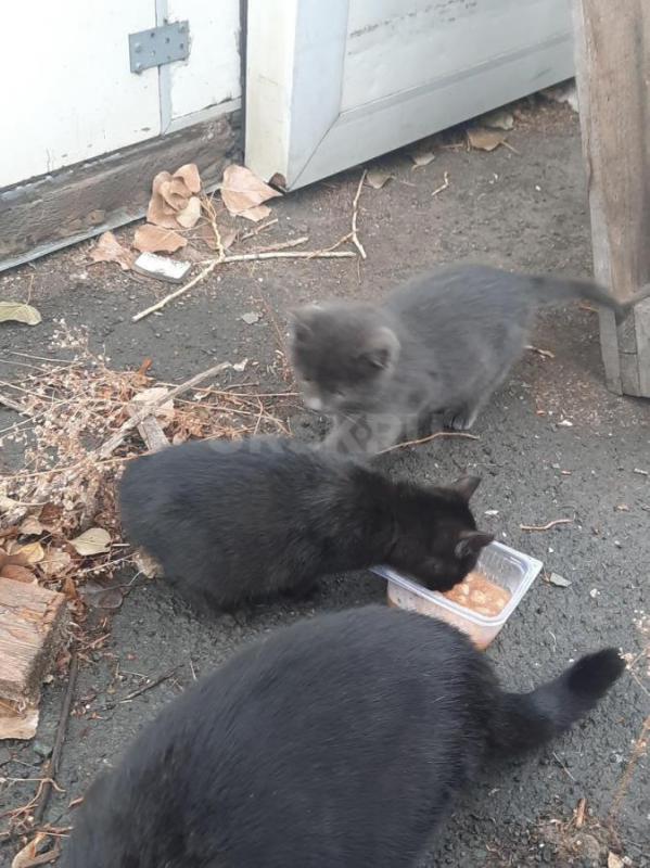 Котята 1 месяц, черный с белой грудкой и серенькие.